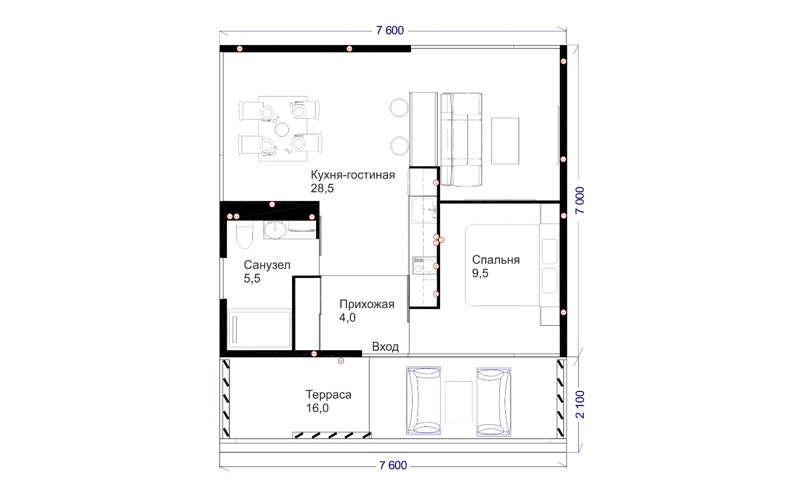 Дом 63м2, конфигурация с террасой 16м2 - стиль 1, максимальная функциональность!