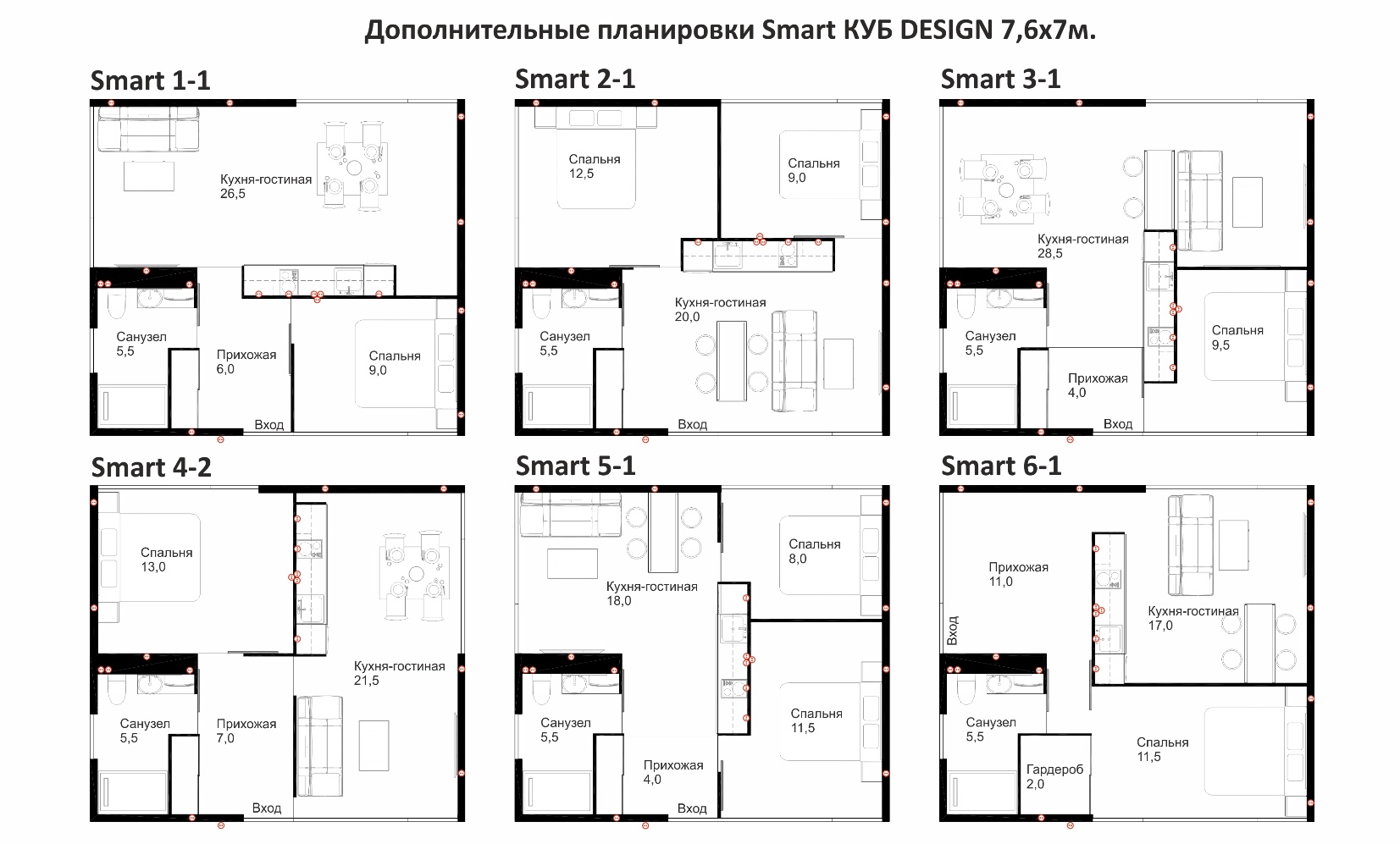 Теперь вам не нужно ломать голову, как сделать удобную планировку, мы решили этот вопрос за вас. Предлагаем 13 модульных планировок, в которых продуманы все детали для любых потребностей: от дома с двумя комнатами до четырехкомнатного.